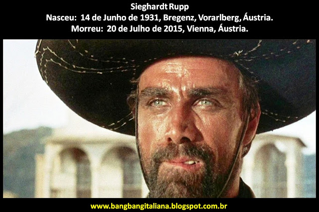 Recebi em 31 de maio de 2016, a informação da morte do ator austríaco Sieghardt Rupp através do amigo e parceiro, Tom Betts dos USA [http://westernsallitaliana.blogspot.com.br/], que por falta de informações e divulgação não foi noticiado na imprensa mundial, mas independente de ter passado quase um ano, este grande ator terá aqui neste espaço a sua simples e humilde homenagem.
