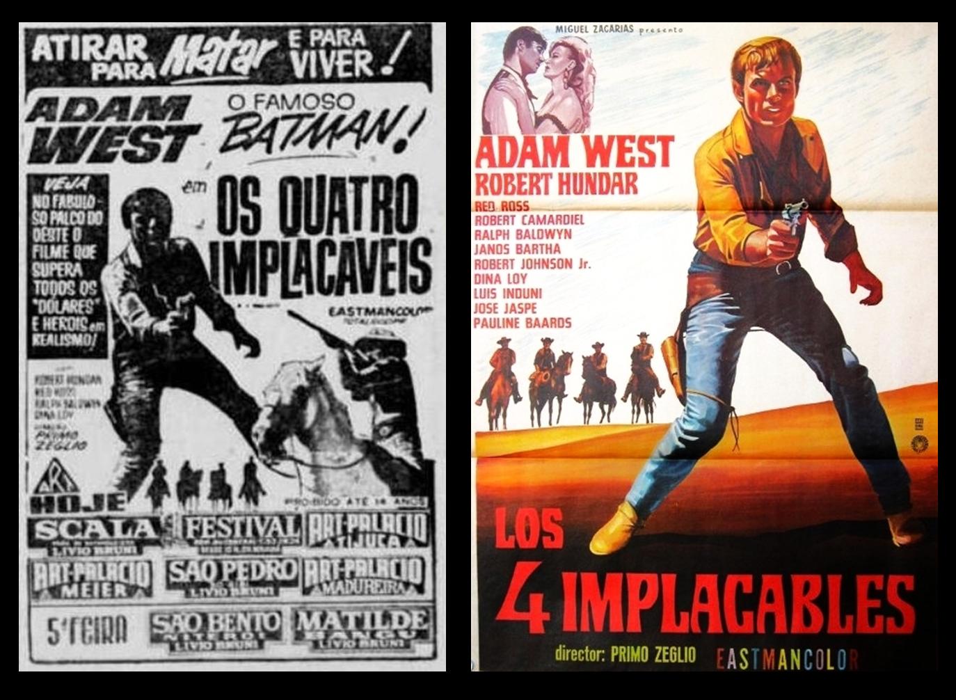 Nessa trajetória, Adam West tentaria também a sua sorte em 1966 nesta Co-produção Ítalo-Espano "I 4 Inesorabili" (Os 4 Malditos ou Os 4 Implacáveis exibidos nos cinemas Brasileiros) e felizmente nos brinda com sua única e brilhante participação no estilo "Europeu". Acho que poderia ter feito mais.Adam West, assim como Eastwood teve uma longa carreira antes disso, a maior parte dela, desenvolvido na tela pequena. De fato, naquele ano chegaria a sua popularidade dando vida na televisão ao personagem original dos quadrinhos ao mundo inteiro; Era o Batman, a série no mesmo nome, e esse papel que marcaria o resto de sua carreira e se tornaria uma lenda neste personagem.