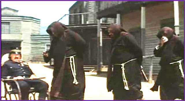 Outras excentricidades podem ser observadas como o abraço "Quebra Costelas" de Bud; Um índio atirando flechas; Um coveiro vendendo caixões de defunto dentro do trem. Um desfecho final com muitas confusões em um trem na estação próximo de sua partida em que tudo finalmente é esclarecido. Desta vez os três irmãos são presos definitivamente, os quais ficariam na cadeia e não teriam mais outra sequencia em suas peripécias no oeste selvagem.