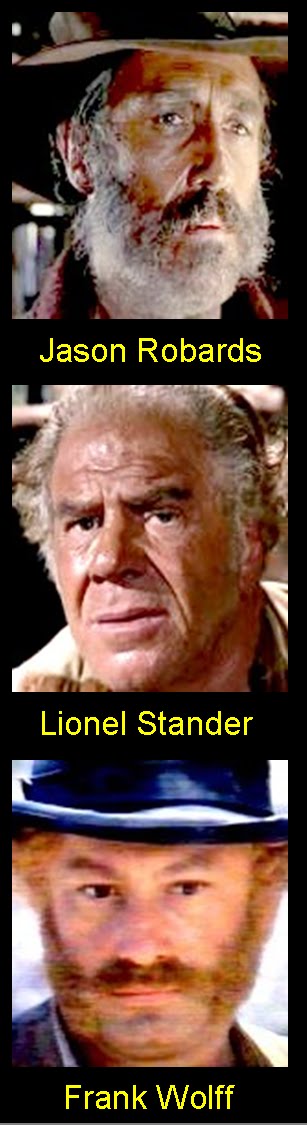 Aldo Berti (Jogando Poker), Spartaco Conversi, Michael Harvey, Antonio Molino Rojo, Benito Stefanelli, Fabio Testi, Frank Braña, Claudio Scarchilli – “Pistoleiros do Bando de Frank”Keenan Wynn – Xerife de Flagstone